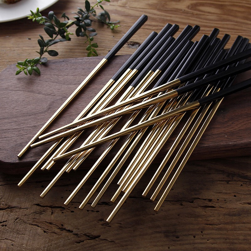 5 Pairs Premium 304 Stainless Steel Chopsticks(Black&Gold)