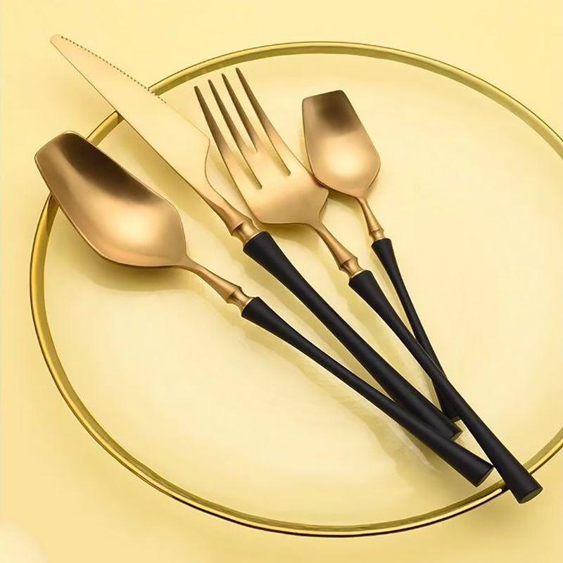 Black And Golden Plated Stainless Steel Flatware Set