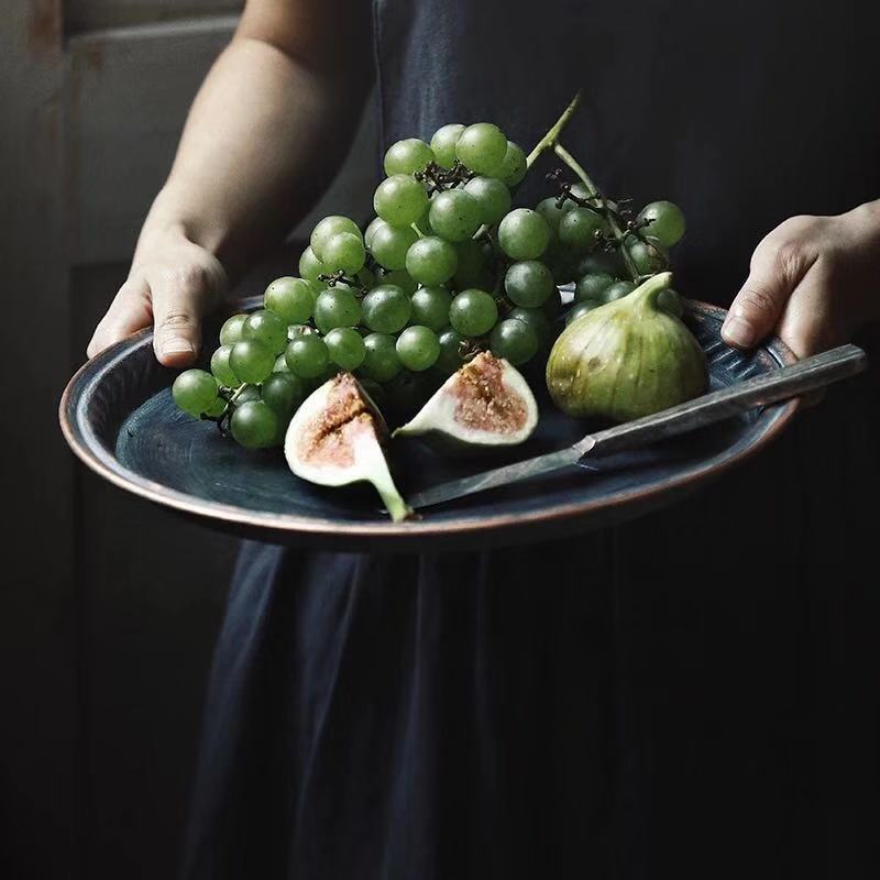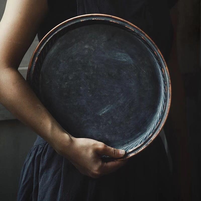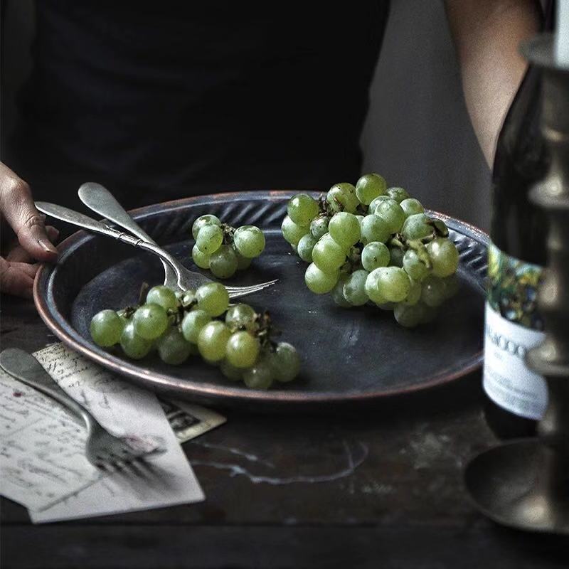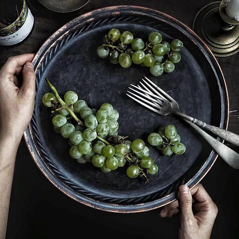 Creative retro round wrought iron craft storage tray, unique Phnom Penh design, durable vintage look and features, can be used for storage trays, trays, bread and fruit