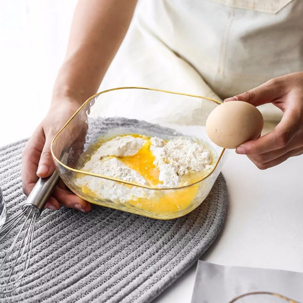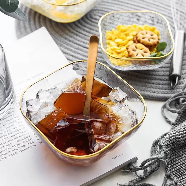 Hammered Texture Glass Bowl with Gold Trim