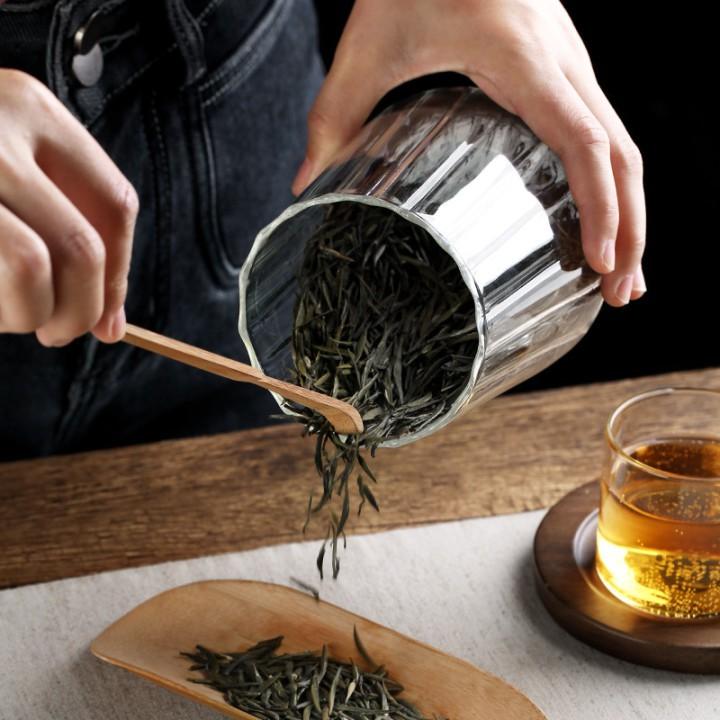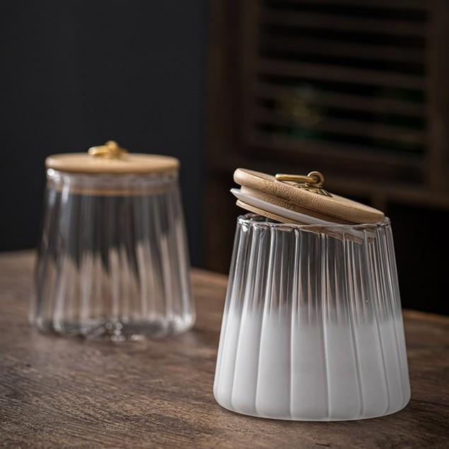 Glass Coffee Nuts Canister Airtight Storage Jar Petal Decorative Container with Bamboo Lid Metal Handle Easy to Grasp